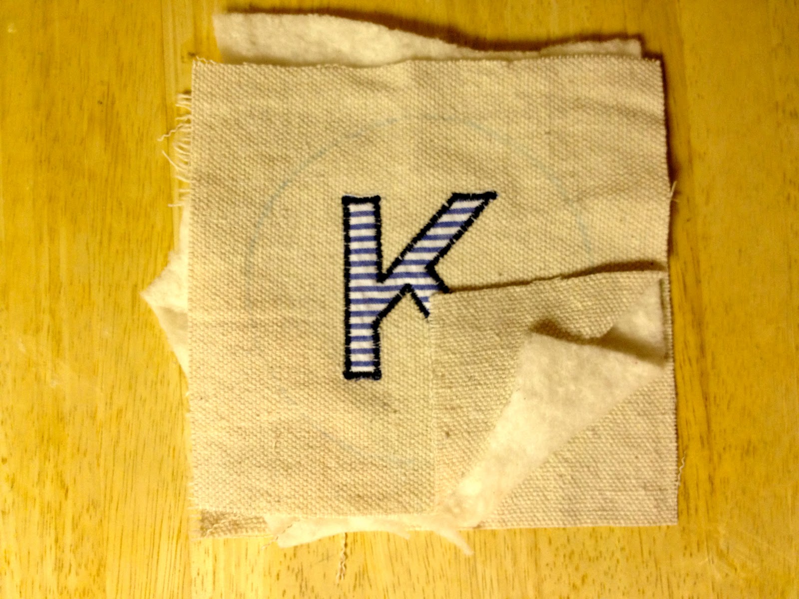 2. Sew letter in place with tight zig zag stitch: